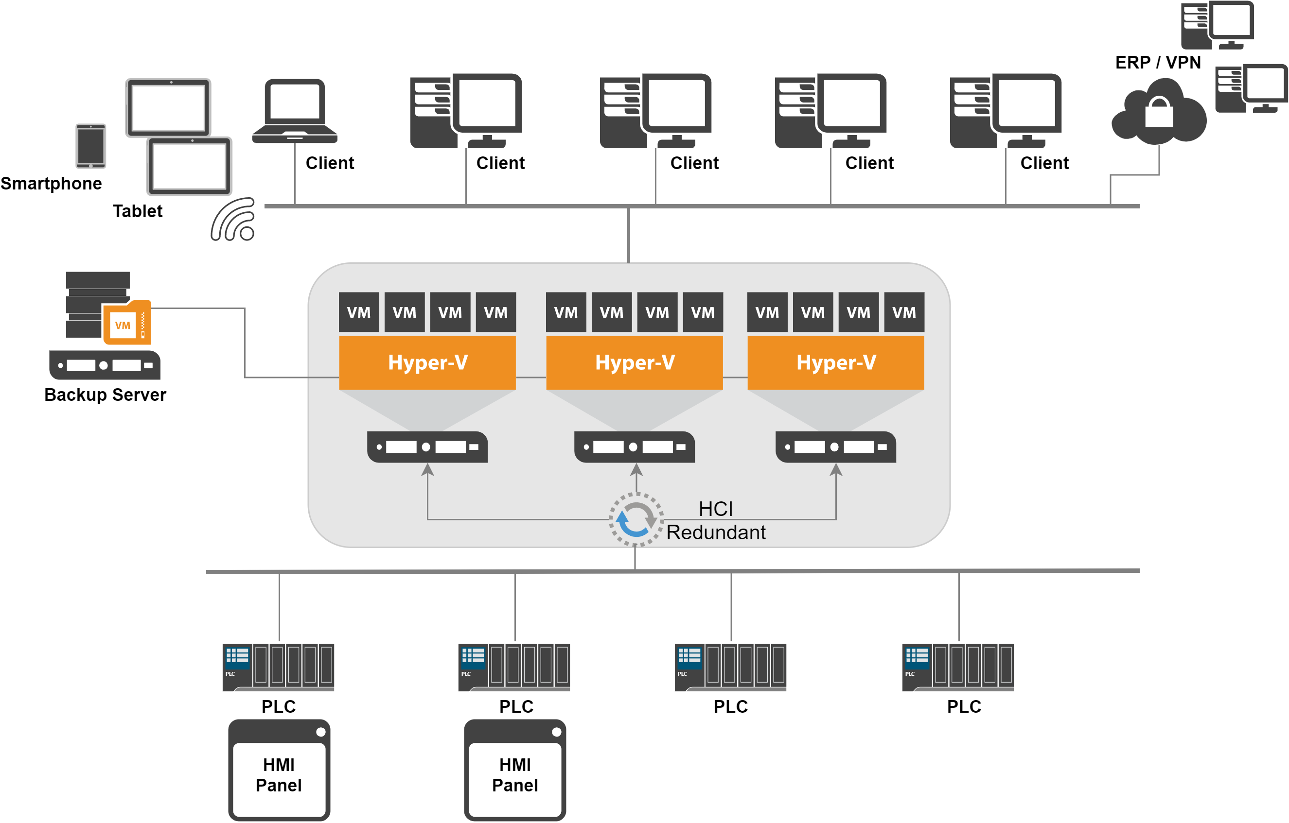 고성능, 고가용성의 HCI 시스템은 기존의 복잡하고 관리가 어려운 산업용 컴퓨팅 시스템 구성을 획기적으로 단순화 시켜주어, 다수의 IT자원을 관리하기 위하여 별도의 IT전문가 없이 현장의 운영인력이 One stop 솔루션으로 모든 IT 자원을 통합 관리할 수 있도록 자동화 시스템을 단순화 시켜 줍니다.